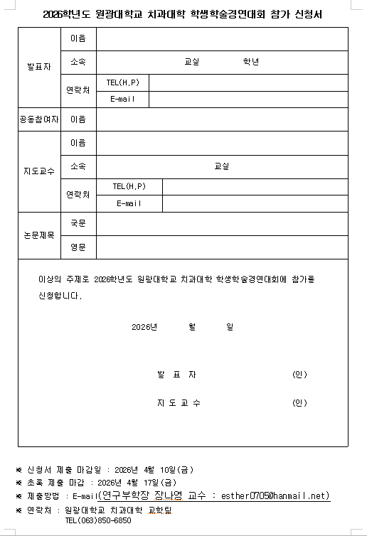 2) 선정된 모든 연구팀은 9월 17일에 있을 원광대학교 치과대학 학생학술경연대회에 참여 및 발표해야 함